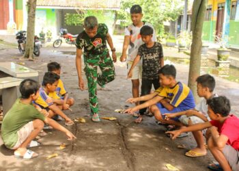 Kediri – Anggota Satuan Setingkat Kompi (SSK) Satgas TNI Manunggal Membangun Desa ke-127 Kodim 0809/Kediri dari Batalyon Infanteri 512/QY, Praka...