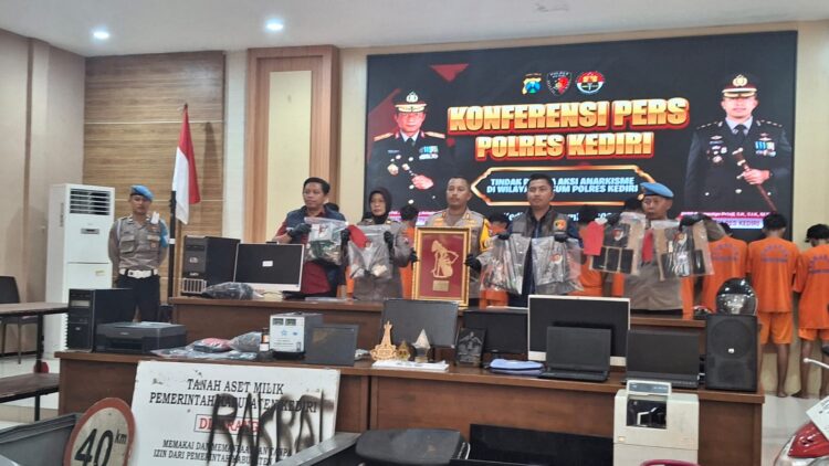 Kediri – Dalam insiden yang terjadi di kawasan Kantor Pemerintah Kabupaten (Pemkab) Kediri dan DPRD Kabupaten Kediri, pihak kepolisian telah mengamankan sebanyak 123 orang terduga pelaku. Dari jumlah tersebut, 28 orang ditetapkan sebagai tersangka, termasuk 14 anak di bawah umur, satu perempuan, serta empat orang yang masih dalam daftar pencarian orang (DPO).