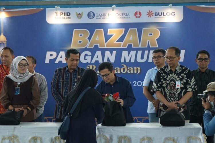 Kediri – Kantor Perwakilan Bank Indonesia (BI) Kediri bekerja sama dengan Sub Badan Musyawarah Perbankan Daerah (BMPD) Kediri-Madiun, Pemerintah Kota Kediri, Tim Pengendalian Inflasi Daerah (TPID) Kota Kediri, serta Bulog Divre Kediri menggelar Bazar Pangan Murah Ramadan 2025 di GOR Jayabaya, Kota Kediri, Kamis (20/3/2025).