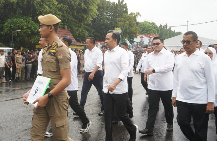 Pelaksanaan geladi bersih dimulai dari kawasan Monumen Nasional. Meski pakaian yang dikenakan basah karena hujan, Mas Dhito sapaannya tetap semangat mengikuti rangkaian kegiatan bersama para kepala daerah lain.