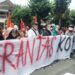 Blitar – Ratusan massa yang tergabung dalam Komite Rakyat Pemberantas Korupsi (KRPK) dan Front Mahasiswa Revolusioner (FMR) menggelar aksi unjuk rasa di Kantor Kejaksaan Negeri Kota dan Kabupaten Blitar, Rabu (11/12/2024).