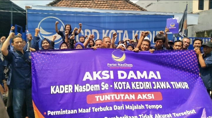 Kediri – Kader Partai NasDem di sejumlah daerah menggelar aksi damai secara serentak sebagai bentuk protes terhadap pemberitaan Majalah Tempo yang dinilai tidak akurat dan merugikan citra partai. Aksi tersebut berlangsung tertib dan menegaskan komitmen kader terhadap etika jurnalistik serta kebebasan pers yang bertanggung jawab.