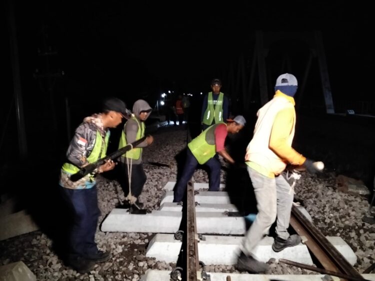 Madiun – PT Kereta Api Indonesia (KAI) Daerah Operasi (Daop) 7 Madiun terus meningkatkan keandalan prasarana perkeretaapian dengan melakukan penggantian bantalan rel di sejumlah titik strategis. Salah satu pekerjaan terbaru dilakukan di petak jalur antara Stasiun Geneng dan Stasiun Ngawi.