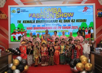 Ceria Anak TK Meriahkan Lomba Fashion Show Hari Bhayangkara ke-79 di Kediri