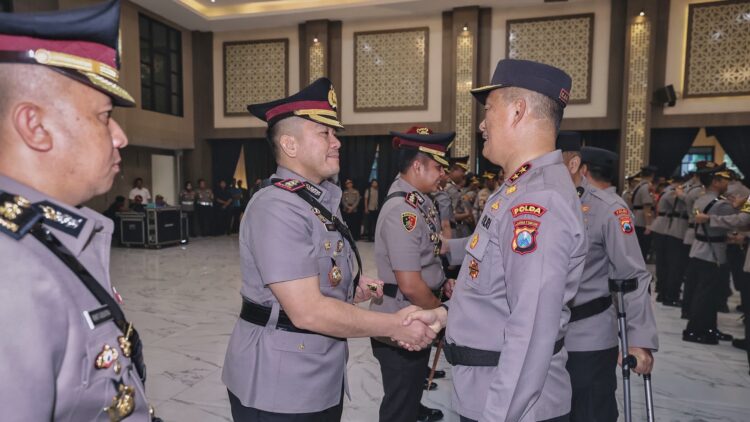 Blitar – Mutasi jabatan di lingkungan Polda Jatim mulai bergulir. Kapolda Jatim Irjend Pol Imam Sugianto memimpin upacara serah terima jabatan (Sertijab) para perwira menengah (Pamen) di lingkungannya tersebut pada Selasa (14/1/2024) di Gedung Mahameru, Mapolda Jatim.