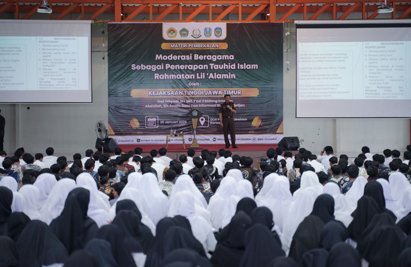Kegiatan pembekalan kebangsaan tersebut dilaksanakan pada Kamis (29/1) di lingkungan Ponpes Al Ubaidah, dan dihadiri Kasi II Bidang Intelijen Kejati Jawa Timur Dwi Setyadi, didampingi Analis Data dan Informasi Bidang Intelijen Abdullah, beserta jajaran.