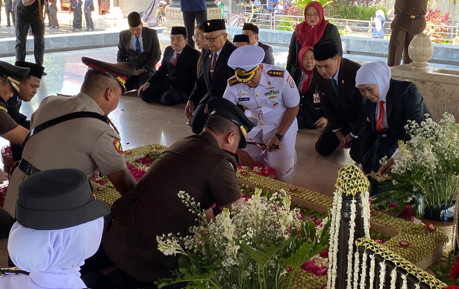 “Dalam rangkaian HUT ke-80 Pemprov Jawa Timur, hari ini saya kebagian ziarah ke makam Bung Karno,” ujar Khofifah Indar Parawansa usai kegiatan.