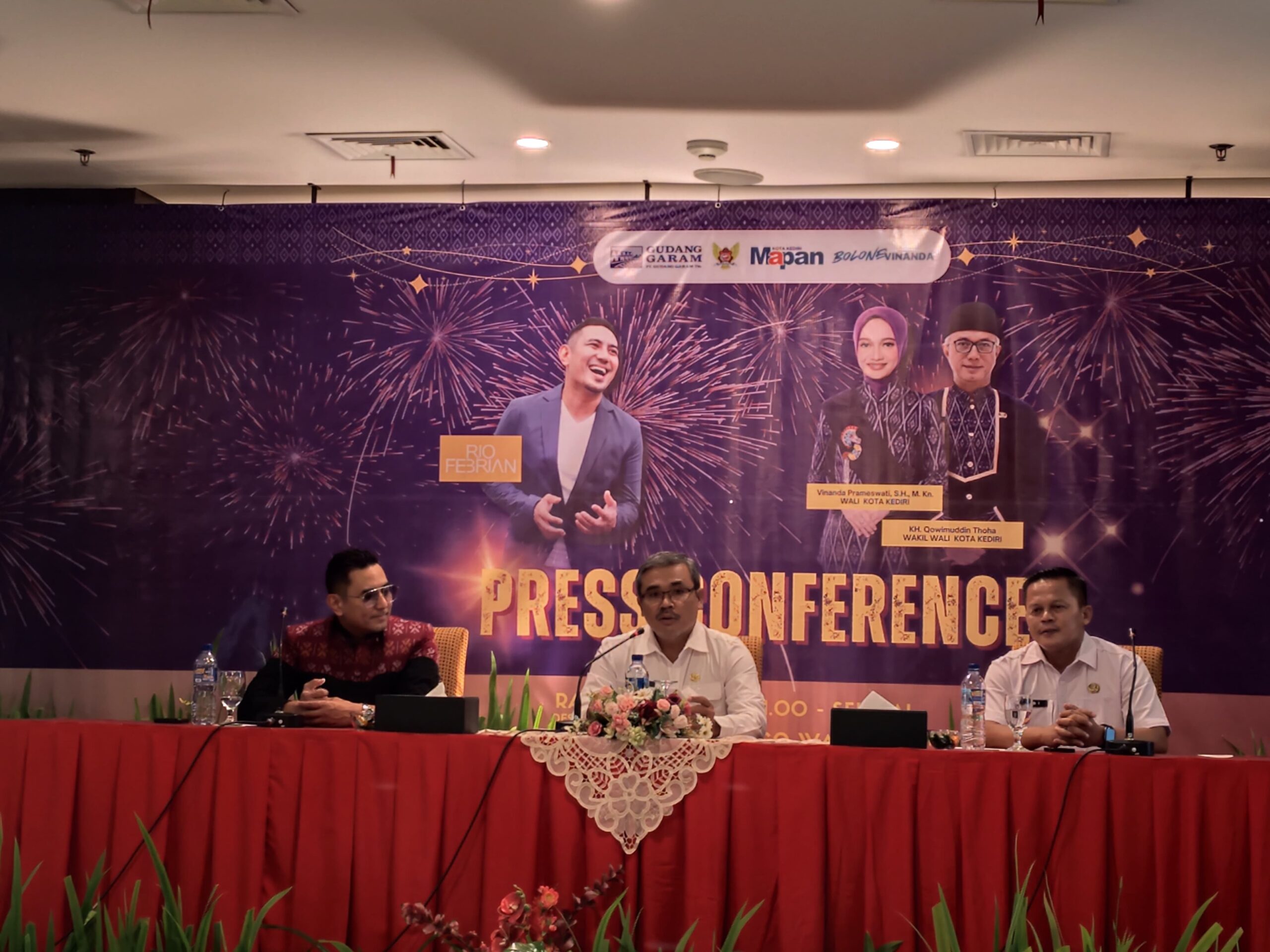 Perayaan malam tahun baru ini semakin semarak dengan kehadiran penyanyi nasional Rio Febrian sebagai bintang tamu utama. Penyanyi yang kini menetap di Yogyakarta itu mengaku antusias bisa kembali tampil di Kota Kediri. Menariknya, Rio Febrian hadir mengenakan busana berbahan tenun khas Kediri sebagai bentuk apresiasi terhadap budaya lokal.