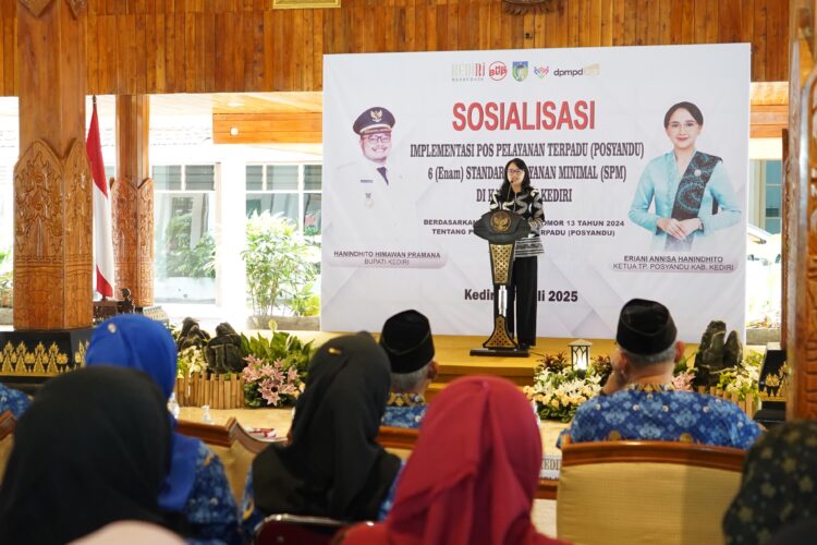 Kediri – Ketua Tim Pembina Posyandu Kabupaten Kediri, Eriani Annisa Hanindhito atau yang akrab disapa Mbak Cicha, mengajak seluruh Posyandu di Kabupaten Kediri untuk meningkatkan pelayanan sesuai 6 Standar Pelayanan Minimal (SPM). Ajakan ini disampaikan dalam acara sosialisasi Implementasi Posyandu 6 SPM yang digelar di Pendopo Panjalu Jayati, Kamis (17/7/2025).