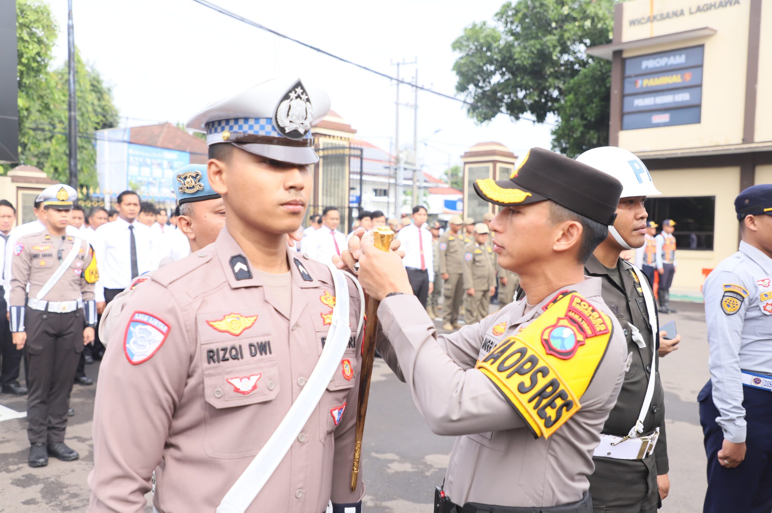 Kediri — Polres Kediri Kota Polda Jawa Timur menggelar apel pasukan Operasi Zebra 2025 di halaman Mapolres Kediri Kota pada Senin (17/11/2025) pagi. Apel dipimpin Kapolres Kediri Kota, AKBP Anggi Saputra Ibrahim, S.H., S.I.K., M.H., dan diikuti jajaran pejabat utama, para kapolsek, serta seluruh personel Polres Kediri Kota.