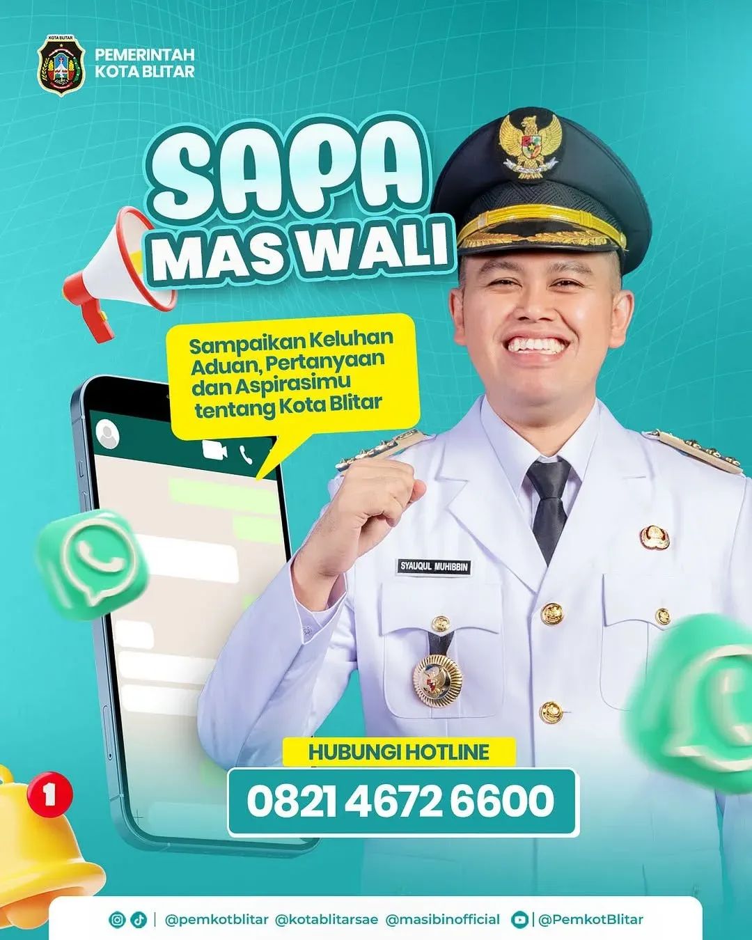 Blitar – Kota Blitar kembali menghadirkan inovasi pelayanan publik dengan meluncurkan Sapa Mas Wali, kanal komunikasi dua arah yang memungkinkan masyarakat menyampaikan aspirasi, aduan, dan pertanyaan langsung kepada kepala daerah.
