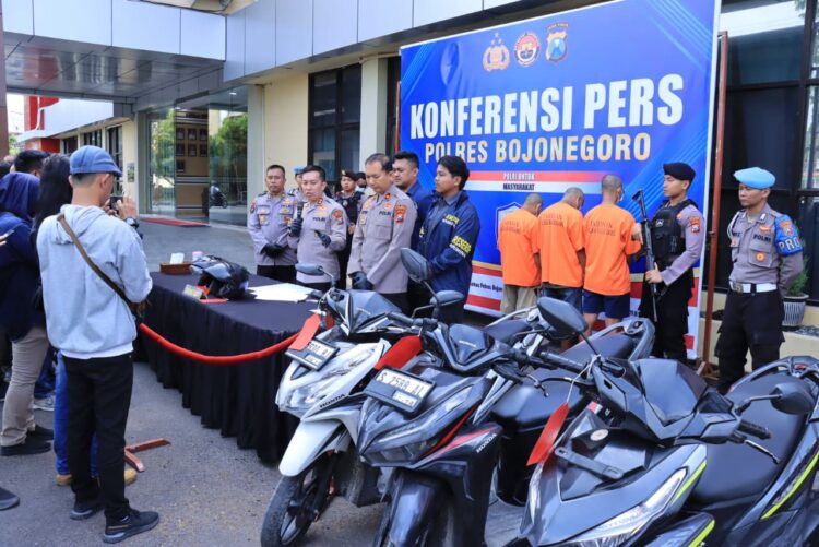 Bojonegoro – Jajaran Kepolisian Resor (Polres) Bojonegoro, Polda Jawa Timur berhasil mengungkap sindikat pencurian kendaraan bermotor (curanmor) lintas kabupaten. Dalam pengungkapan ini, lima orang tersangka berhasil diamankan beserta sejumlah barang bukti hasil kejahatan.