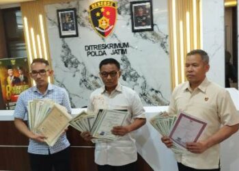 Jember – Satreskrim Polres Jember berhasil menggagalkan peredaran uang palsu senilai Rp52 juta dan menangkap dua tersangka berinisial HP dan DI. Tersangka HP ditangkap lebih dulu di rumahnya di Sukorejo, Sumbersari, dengan barang bukti uang palsu pecahan Rp50 ribu dan Rp100 ribu.