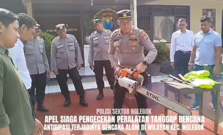 Dalam apel tersebut, jajaran Polsek Nglegok juga melakukan pengecekan dan simulasi penggunaan sejumlah peralatan seperti gergaji mesin dan perlengkapan darurat lain yang dapat digunakan saat terjadi bencana.
