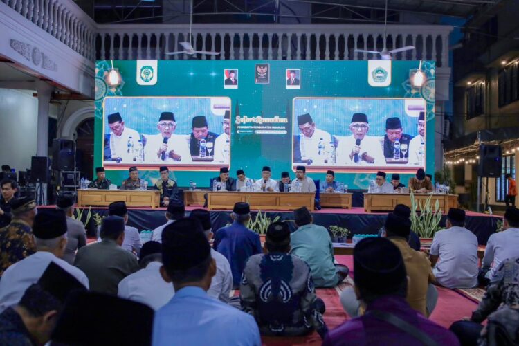 Nganjuk – Pemerintah Kabupaten Nganjuk menutup rangkaian kegiatan Safari Ramadan tahun ini di Pondok Pesantren Al Ubaidah, Senin (16/3). Acara dihadiri Bupati Marhaen Djumadi, Wakil Bupati Tri Handy Saputra, dan jajaran Forkopimda Kabupaten Nganjuk.