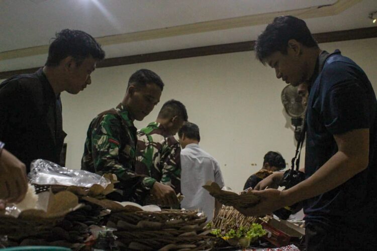 Menjelang waktu berbuka, suasana di Balai Desa Gadungan tampak hangat. Prajurit TNI dan warga duduk bersama sambil berbincang santai menunggu azan maghrib berkumandang.