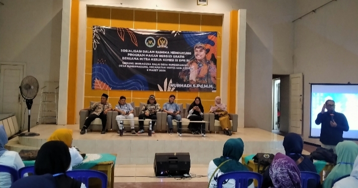 Kediri – Anggota Komisi IX DPR RI, Nurhadi, menggelar sosialisasi program makan bergizi gratis di Gedung Serbaguna Balai Desa Sumberagung, Kecamatan Wates, Kabupaten Kediri, Senin (9/3/2026) sore. Kegiatan tersebut dihadiri sekitar 400 warga Desa Wates serta perwakilan tokoh masyarakat dari sejumlah kecamatan.