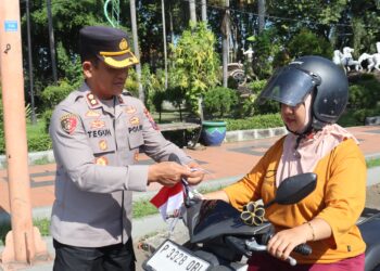 Polresta Banyuwangi Bagikan Bendera Merah Putih Sambut HUT RI ke-80