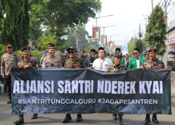 Kediri – Sekitar 500 peserta dari Himpunan Alumni Santri Lirboyo (Himasal), Banser, dan santri mengikuti longmarch damai bertajuk “Aliansi Santri ...