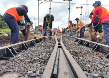 Blitar – PT Kereta Api Indonesia (Persero) Daerah Operasi 7 Madiun melakukan pekerjaan penggantian wesel sebagai upaya peningkatan prasarana dan ...