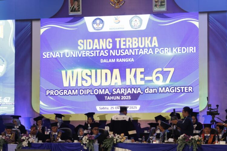 Kediri – Universitas Nusantara PGRI (UNP) Kediri kembali mencetak prestasi akademik membanggakan pada Wisuda ke-67 yang digelar di salah satu hotel di Jalan Urip Sumoharjo, Kota Kediri, Sabtu (25/10/2025).